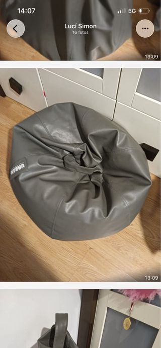 Este puf tiene un diseño moderno y es muy cómodo. - Acabado en piel sintética. - Color gris. - Asa para facilitar su transporte.