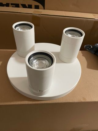 Lámpara de techo con un diseño moderno y elegante. - Base circular. - Tres focos dirigibles.