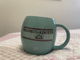 Taza de cerámica con diseño Madrugadores Social Club de McDonald's. - Color azul verdoso. - Diseño con el logo de McDonald's.