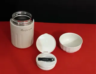 Recipiente termo inoxidable con capacidad de 600ml. - Diseño moderno y funcional. - Ideal para almacenar alimentos o líquidos.