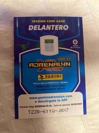 Carta de Oyarzabal de la colección Adrenalyn XL 21-22. - Edición Balón de Oro. - Incluye estadísticas de juego. - Diseño dorado y negro.