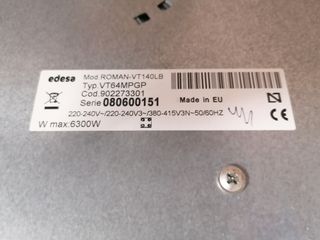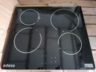 Vitrocerámica Edesa modelo Romantic con cuatro zonas de cocción. Medidas 59x52cm. Ref EDESA VT-140LB 2 x 18cm, 1 x 18cm y 1 x 21cm Control táctil con bloqueo independiente por zonas. - Diseño elegante en color negro. - Superficie lisa y fácil de limpiar. - Indicadores de zona de cocción. Sin apenas uso, sin rayones, desperfectos ni similar. Está como nueva.