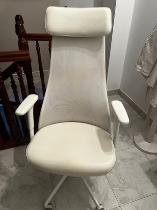Silla de oficina con un diseño moderno y cómodo. Regulable altura tambien altura almihada de cabeza,altura brazos y el reposabrazos ae mueve plante parras apretando el boton,es de alta gama,esta sin usar era de decoracion - Respaldo alto con soporte para la cabeza. - Brazos acolchados. - Base con ruedas para fácil movilidad. Solo venta en persona