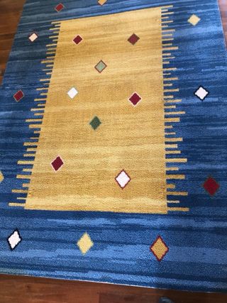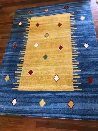 Alfombra de lana amarilla y azul