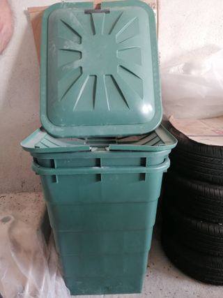 2 Depósitos de plástico verde con su tapa. Doy 2 grifos de plástico sin usar que pueden colocarse en la parte inferior. - Capacidad de 300 litros. - Medidas 60x60x85cm de alto. - Tapa con diseño. - Ideal para almacenamiento. Como pude verse en la fotos, ambas tapas tienen una muesca hecha para permitir la salida de la manguera de la bomba de agua. Precio por los 2 depósitos.