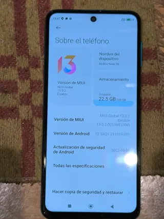 Teléfono móvil Xiaomi Redmi Note 9S con 128GB de almacenamiento. - Modelo: Redmi Note 9S - Capacidad: 128 GB - Versión MIUI: Global 13.0.2 Estable - Versión Android: 12 - Actualización de seguridad: 2022-10-01