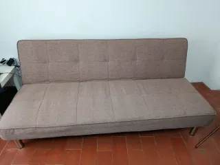 Sofá cama de diseño moderno, ideal para optimizar espacios. Su sistema clic clac permite transformarlo fácilmente de sofá a cama. - Tapicería en tela. - Patas metálicas.
