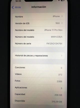 Envio por Wallapop. Negociable SOLO si vienes a recogerlo. iPhone 11 Pro Max 256Gb libre de iCloud y compañia telefonica. Características y estado en fotos. En correcto funcionamiento con pantalla y bateria nuevas. Permite instalar iOS 26. Regalo varias fundas, protectores de pantalla. Incluye auriculares Jabra Elite 75P con su cable de carga y varias almohadillas (el auricular derecho funciona cuando quiere). Posibilidad de entrega en determinados puntos de Alicante y Murcia.
