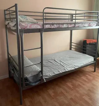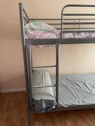 Litera de metal, ideal para habitaciones infantiles o juveniles. Su diseño moderno se adapta a cualquier decoración. - Estructura robusta de metal. - Incluye escalera de acceso. - Barreras de seguridad en la cama superior.