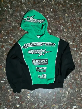 Sudadera con un diseño inspirado en el automovilismo. - Estampado frontal con logos de High Speed Motorsport, Dynamic Racing y Raceway Street Competition. - Detalles gráficos en verde y negro. - Capucha integrada.