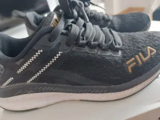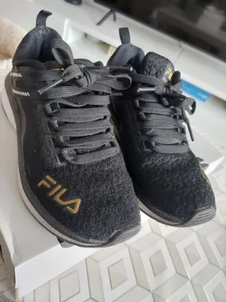 Zapatillas deportivas Fila en color negro con detalles en dorado. Usado con desgaste en parte talón. Adjunto foto