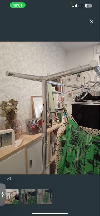 Perchero de acero inoxidable con un diseño moderno. - Estructura metálica resistente. - Acabado plateado brillante. Burro de metal doble. Alto ajustable, ancho 0,58m, largo cerrado 1'01m y abiero 1’70