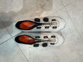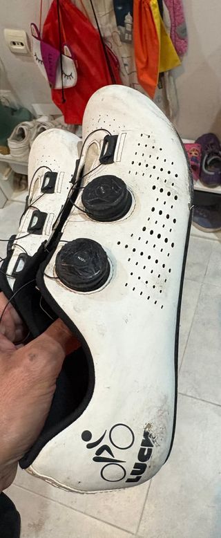 Zapatillas de ciclismo LUCK en talla 43 con sistema de cierre de doble boa. Usadas, con marcas pero con mucha vida por delante. Las vendo con las calas. - Diseño deportivo en color blanco. - Logo de la marca LUCK en el lateral.