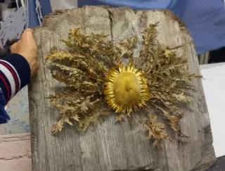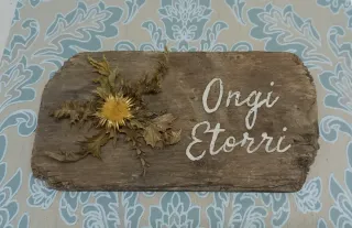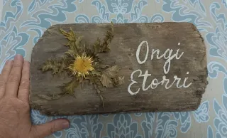 Eguzkilore artesanal sobre madera vieja,OngiEtorri