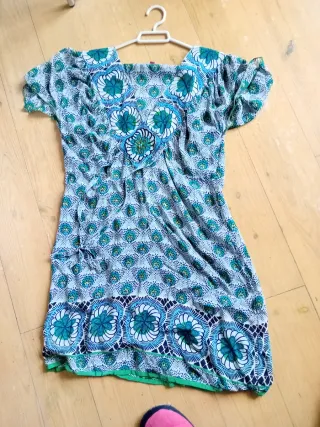 Vestido con un bonito estampado floral en tonos azules y verdes. Su diseño es ligero y cómodo. - Estampado floral. - Diseño ligero. - Talla única.