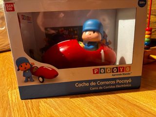 Coche de carreras electrónico de Pocoyó, ideal para los más pequeños. El juguete presenta un diseño llamativo y colorido. - Incluye figura de Pocoyó. - Coche de color rojo con el número 1. - Edad recomendada: 18 meses en adelante.