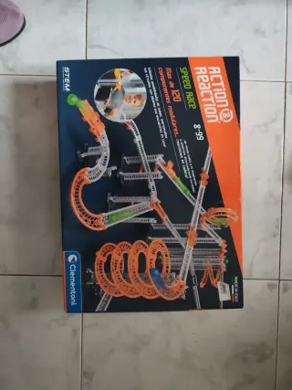 Se vende juego de construcción Action Reaction de Clementoni, modelo Speed Race, con más de 120 componentes modulares. Incluye también un puzzle de madera con una niña columpiándose. - Juego de construcción. - Puzzle de madera. - Marca: Clementoni. - Modelo: Speed Race. - Edad recomendada: 8-99 años.