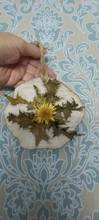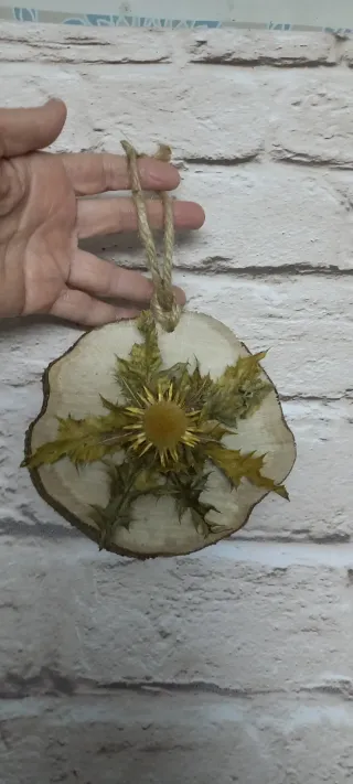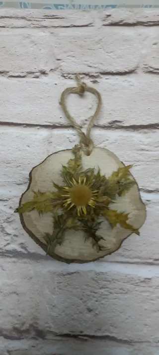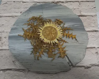Eguzkilore artesanal sobre rodaja de madera
