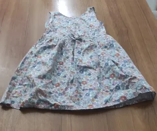 Vestido infantil con estampado floral. - Talla 5-6 años. - Diseño sin mangas. - Detalle de lazo en la cintura.