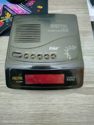 Radio despertador digital de la marca Oskar, con sintonizador AM/FM y pantalla LED roja. Funciona correctamente: enciende, muestra la hora y la radio suena sin problemas. 🔹 Funciones: Reloj digital Alarma Radio AM/FM Botones de snooze, sleep y ajuste de hora Control de volumen y sintonía manual