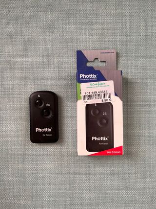 Mando a distancia Phottix para cámaras Canon. - Diseño compacto y ligero. - Botones S y 2S. Para Canon digitales SLR. En la foto de la caja por detrás pone todos los modelos compatibles. Está sin usar.