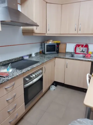 Conjunto de muebles de cocina y electrodomésticos. - Muebles de madera y bsncada. - Electrodomésticos: horno, vitroceramica, lavadora, lavavajillas y extractor. - fregadero y grifo (menos de un año) Largo de los muebles 4,2 metros.