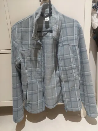 Polar de mujer con estampado de cuadros. - Talla S. - Diseño de cuadros en tonos grises y blancos. - Cierre de cremallera frontal. - Cuello alto. Entallado