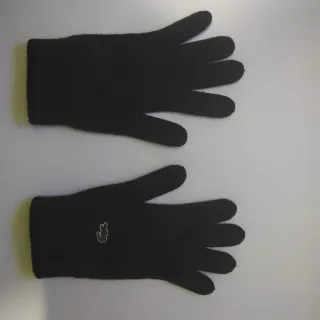 Par de guantes de lana de la marca Lacoste. - Color gris co ribete oscuro - Logo de Lacoste bordado.