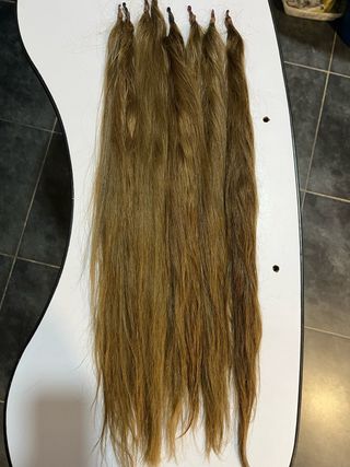 Lote de extensiones de cabello natural. Precio por unidad. - Color castaño claro(2). 55cm. -color rubio (10)- hay 8 de 60cm y 2 de 107cm