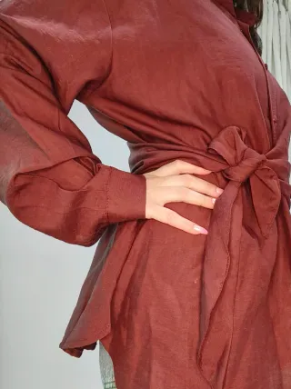 Conjunto de salvacruces y salvador de dorso en color marrón. - Material de borreguillo. - Bastante usado. Son 3, no se venden por separado.