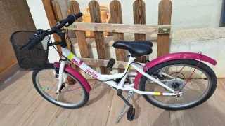 Bicicleta infantil Denbike en color blanco con detalles en rosa. - Ruedas de 20 pulgadas. - Cesta delantera. - Guardabarros rosa.