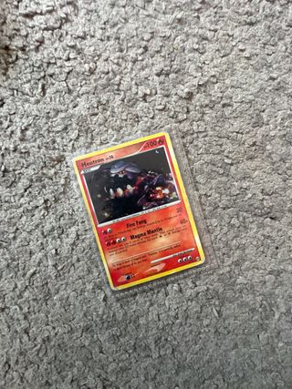 Carta Pokémon de Heatran, edición de 2009. - Ataque especial: Magma Mantle. - Nivel 58. - Energía: Fuego.