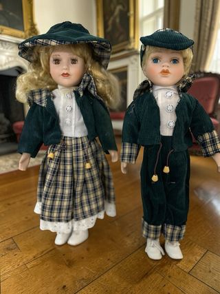 Pareja de muñecos de porcelana KMACHI con ropa clásica tartán y sombreros. Ideales para colección o decoración. 👧 • Pareja muñecos porcelana • Marca KMACHI original • Altura aprox 40 cm • Niño y niña a juego • Ropa tartán estilo vintage • Chaqueta pana verde • Sombreros incluidos • Pelo rubio y ojos realistas 👂 Precio negociable ✅📦 Envío ✅ #:decoración vintage, muñeca antigua, muñecos colección, juguete decorativo, decoración clásica, estilo victoriano, coleccionismo