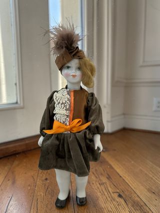 Muñeca de porcelana decorativa estilo vintage con vestido de terciopelo, encaje y sombrero con pluma. Ideal colección o decoración. 👧 Muñeca porcelana decorativa Altura aprox 40 cm Vestido terciopelo marrón Detalles encaje y lazo Sombrero con pluma Cara pintada a mano Estilo vintage clásico 👂 Precio negociable ✅ 📦 Envío ✅ #:decoración vintage, muñeca antigua, muñeca colección, juguete decorativo, decoración clásica, estilo victoriano, coleccionismo