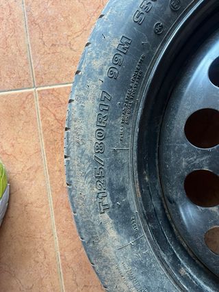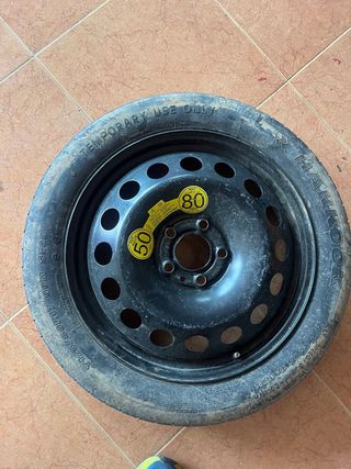 Rueda de repuesto temporal para BMW E60. - Medida: T125/80R17. - Marca: Hankook. - Velocidad máxima: 80 km/h. - Presión máxima: 60 PSI.
