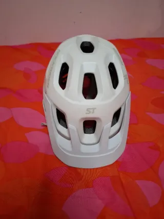 Casco de ciclismo Rockrider para adulto en color blanco. Diseñado para ofrecer protección y comodidad. - Talla 55-59cm - Visera integrada. - Sistema de ventilación. - Correas ajustables.