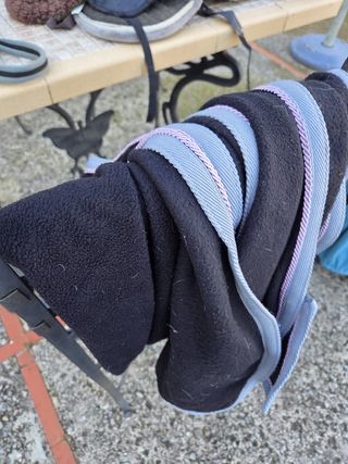 Se vende lote de rendajes y martingalas para dar cuerda en pista. Sistema de entrenamiento PESSOA Chambón Negro (roto por un lado pero reparado) Cuerda larga Fouganza Riendas fijas (riendas de atar) en cuero marrón muy resistente.