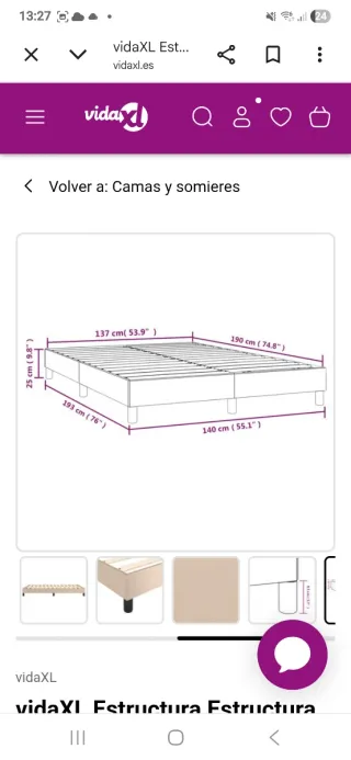 Estructura de cama de matrimonio de 140x190 cm. - Dimensiones: 140 cm (ancho) x 190 cm (largo). - Altura del somier: 25 cm. - Diseño moderno y funcional.