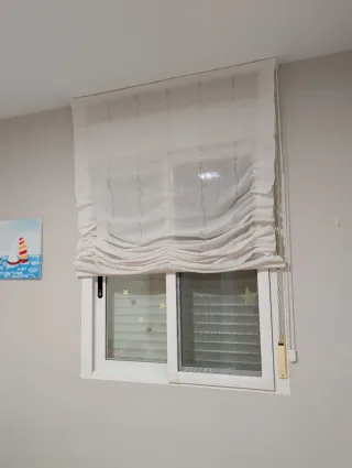 Estores de tela para ventana en color blanco. Son ideales para cualquier habitación. - Diseño moderno y elegante. - Tejido ligero y translúcido.