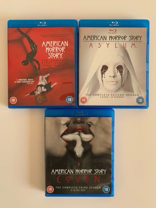 Pack de Blu-ray de American Horror Story que incluye las 3 primeras temporadas. - Contiene 9 discos. - Formato Blu-ray. - Solo idioma inglés