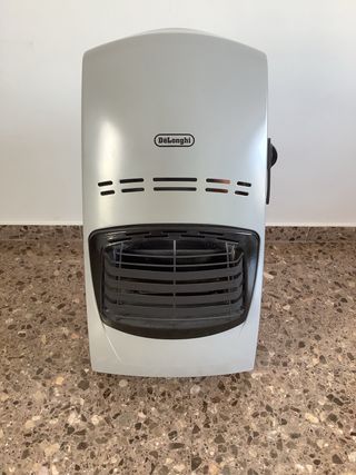 Estufa de gas DeLonghi en color gris y negro. - Diseño moderno y compacto. - Fabricada en plástico resistente. - Potencia 4200W. - Termostato - Calienta 40m2 a máxima potencia.
