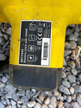 Motosierra eléctrica de color amarillo. - Barra de corte. - Mango auxiliar Hoja 33cm