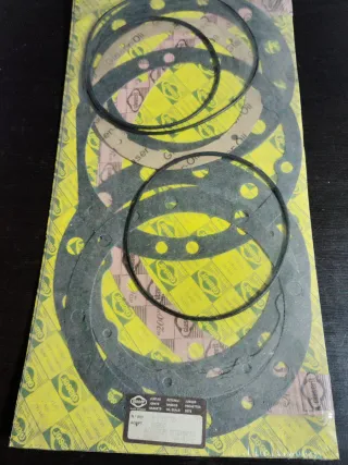 Juego de juntas para caja de cambio de marchas de Pegaso Europa 176 de 6 velocidades. Producto nuevo y original de época procedente de cierre de taller. Desconozco estado de las mismas aunque siguen conservadas en su envoltorio original. - Marca Glaser. - Incluye juntas de diferentes tamaños y formas.