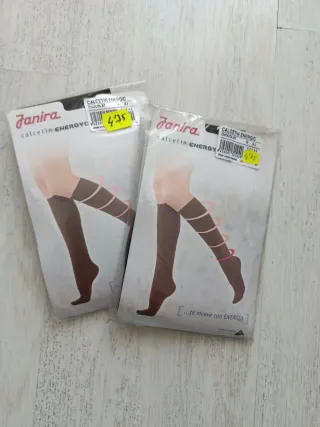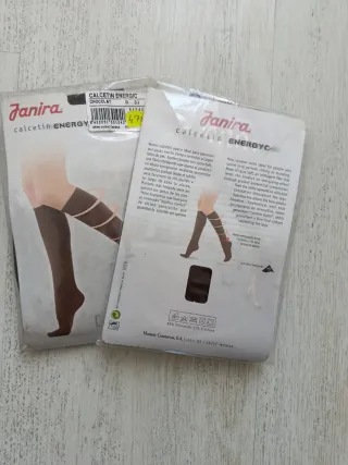 Mini-medias de la marca Janira, modelo Energy en color chocolate. Son de talla L - Diseño con bandas. - Tejido elástico.
