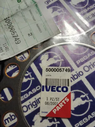 Junta de culata para vehículos Pegaso e Iveco. Producto nuevo y original procedente de cierre de taller. - Referencia: 500005749 - Etiqueta: JUNTA CULATA - Código de barras: 500005749