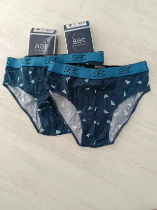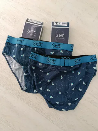 Pack de dos slips para caballero de la marca SET con un divertido estampado de barcos y aviones de papel. - Cinturilla elástica con logo. - Tejido suave y cómodo. - Diseño exclusivo.
