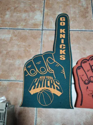 Dos espumas dedos de animador de la NBA, una de los Chicago Bulls y otra de los New York Knicks. Tiene bastante uso pero son piezas difíciles de conseguir. - Espuma de los Bulls con logo. - Espuma de los Knicks con logo y balón de baloncesto.