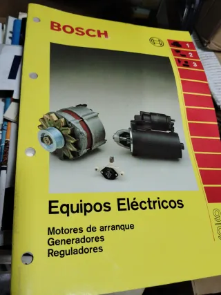 Catálogo antiguo de Bosch sobre equipos eléctricos. - Cubre motores de arranque, generadores y reguladores. - Publicación en español. - Pegaso, VW, Santana, infinidad de datos. Producto antiguo pero muy bien conservado.