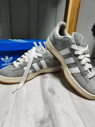 Zapatillas Adidas Campus en color gris. Un clásico para el día a día. - Diseño de ante. - Tres rayas blancas. - Suela de goma.