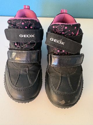 Botas de invierno Geox en talla 27. Son negras con detalles en rosa y blanco. - Cierre de velcro. - Suela de goma. - Diseño estampado. Precio no negociable A recoger en Navatejera